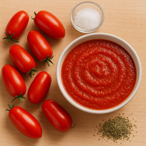 We source our tomatoes directly from Italy, grown under the Mediterranean sun and harvested at peak ripeness. Naturally sweet and full of flavor, they are carefully prepared into our sauce without any preservatives or additives — just pure, honest tomato.